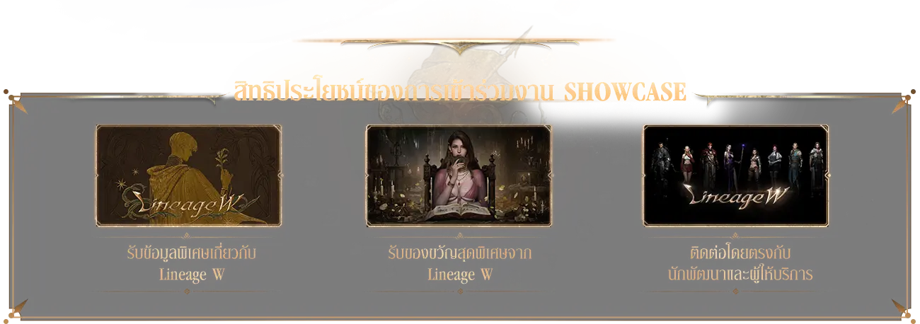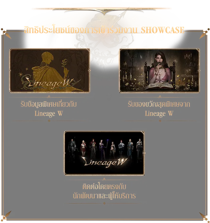 ร่วมทำแบบสำรวจเพื่อลุ้นรับบัตรเชิญเข้าชมงาน Lineage W Showcase สุดพิเศษ ที่ซึ่งผู้เล่นที่ได้รับเลือกจะได้สัมผัสคอนเทนต์ใหม่ก่อนใคร และร่วมเป็นส่วนหนึ่งของอนาคตแห่ง Lineage